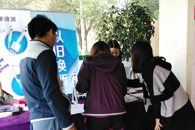 2016年3月28日—3月31日,2016年3月28日—3月31日,寶予德(中國)攜手代理商在武漢四所著名高校舉辦“普惠科技,大行德廣”魅力校園行的第二站。寶予德一直致力于與終端用戶的互動,動員各區域走進高校,聆聽用戶心聲,為用戶答疑解難。活動現場寶予德工作人員講解移液器原理和操作注意事項,還有線下線上有獎互動游戲,吸引了眾多科研一線的可愛同學們參與,現場熱鬧非凡。